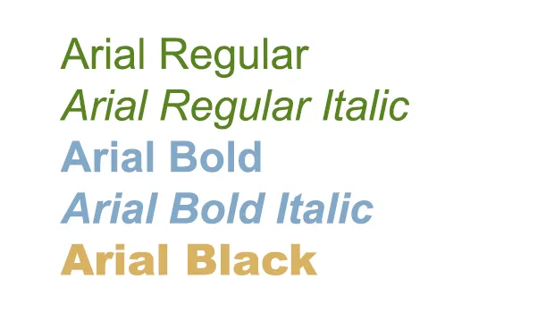 A font family is a set of styles of a particular font that are similar, and bundled together. For example, Arial is available in many variants: