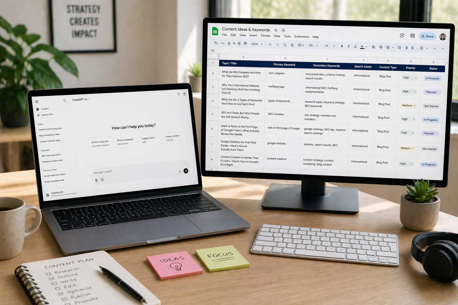 – Conducting keyword research to identify relevant topics.