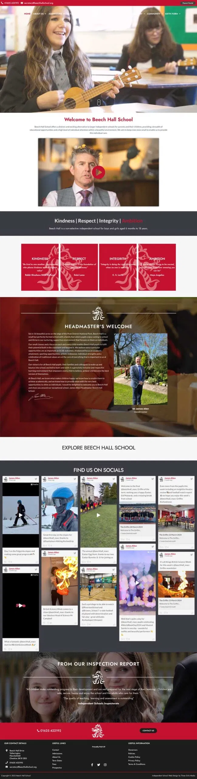 Our approach began with meeting the Head, James Allen, and a thorough analysis of Beech Hall School’s needs and goals. Recognising the importance of first impressions, we designed a visually appealing interface that is not only welcoming, but also easy to navigate for prospective parents and students. The new website features a modern, responsive design that adapts seamlessly to all devices, ensuring an optimal viewing experience on everything from desktops to smartphones.