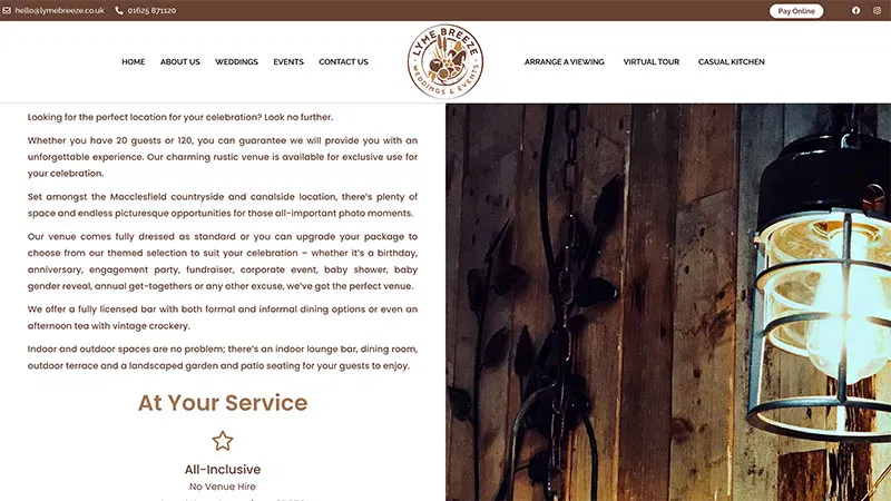 Kate needed two distinct websites for her two audiences, and for the wedding website, she needed to be able not only to capture leads from interested brides and grooms but fo them to be able to book viewings and to pay online for reservations.