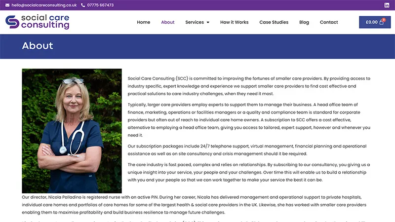 The website followed, and included an e-commerce element as Nicola wanted her clients to pay by subscription for the company’s services. We helped her set up all her merchant accounts so she could process credit card transactions and launched just 9 weeks after we were appointed.